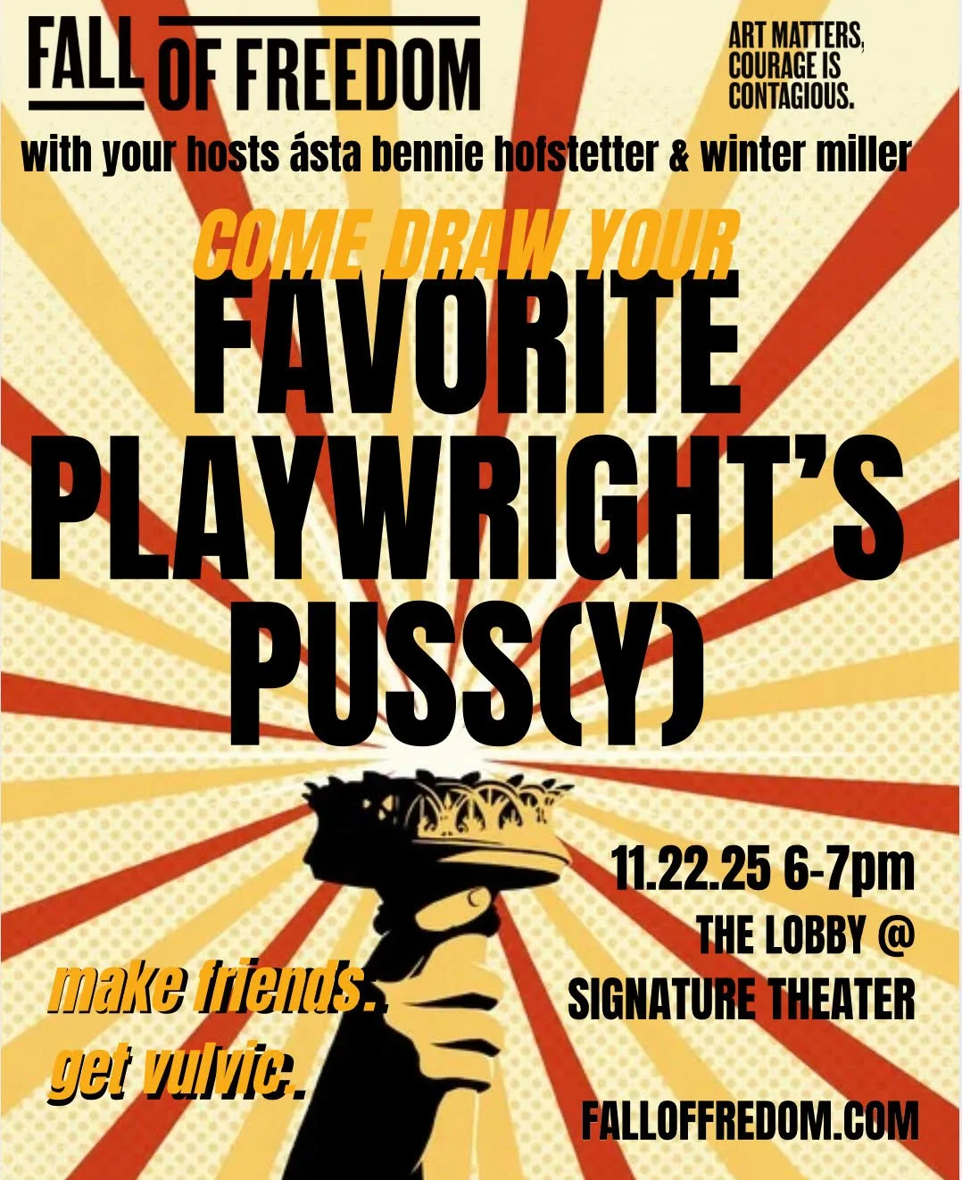 Monday Souls: An 8-class workshop to do scenework OR hear a full draft of your play $675. This new round will be 5:30-8:30pmET Monday eves beginning Jan 5th 2026. (for exact dates, contact me).